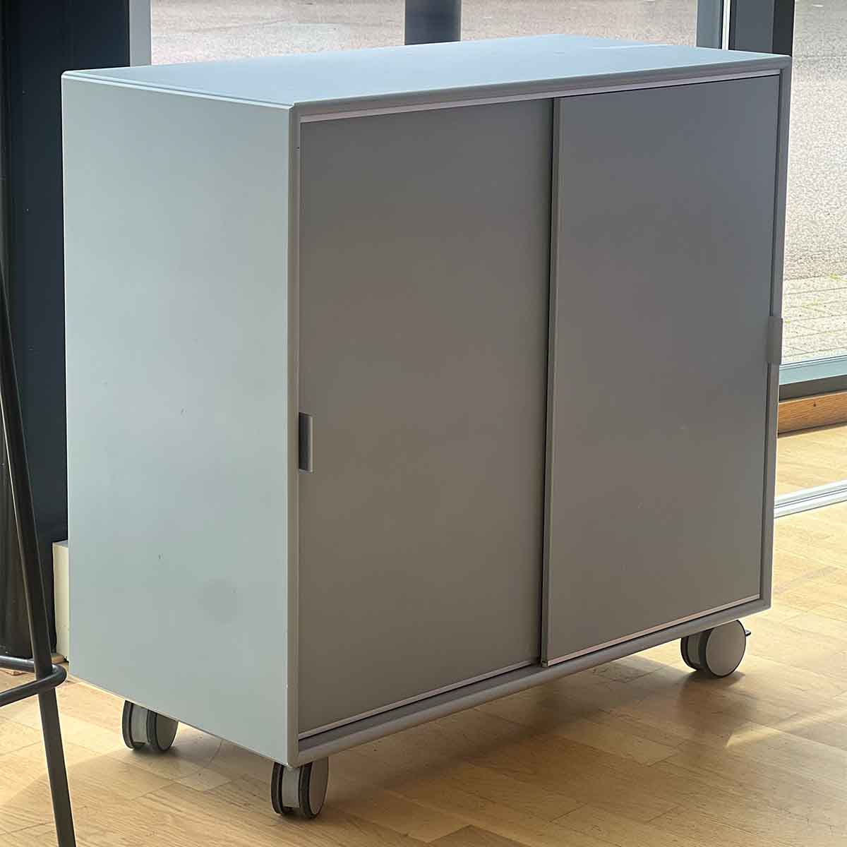 Skåp med hjul och skjutdörrar från Montana, ritat av oss själva med fokus på funktion och modern stil. Skåpet har ett praktiskt hyllplan inuti för smidig förvaring och finns i utförande 02 Fjord. Tack vare hjulen är det enkelt att flytta skåpet efter behov, vilket gör det både flexibelt och användbart i många rum.