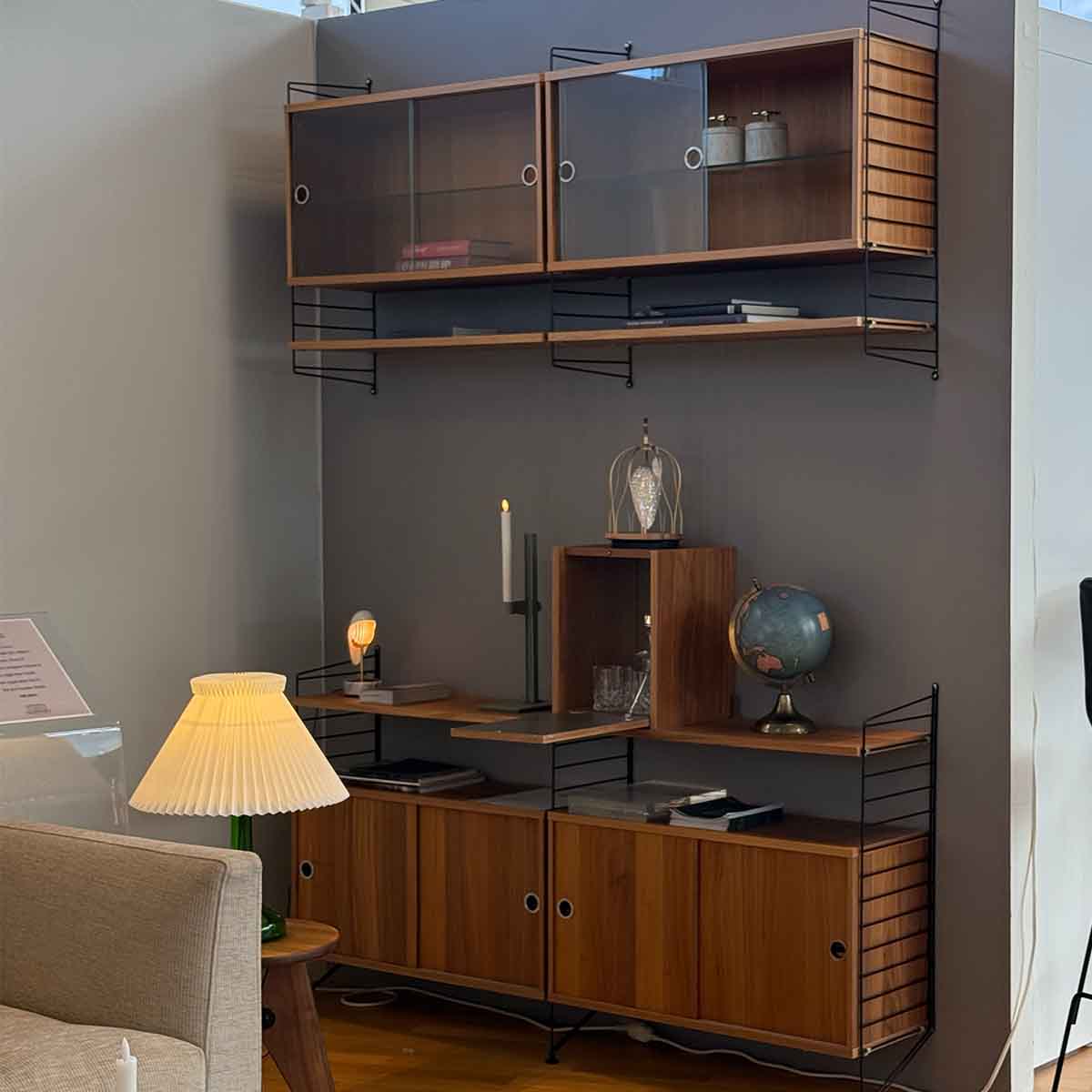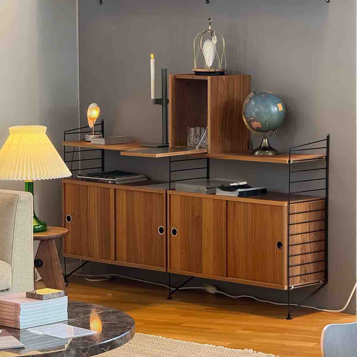 En kombination uppdelad i två sektioner som kombinerar öppen och dold förvaring.