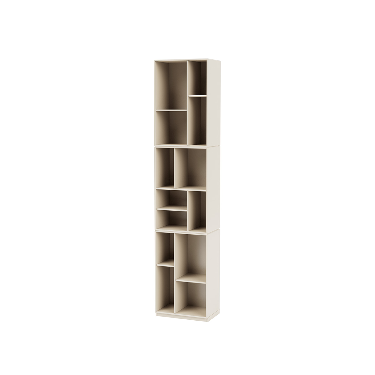 Loom designad av Peter J. Lassen för Montana är en stilren och praktisk bokhylla. Den har flera fack i olika storlekar anpassade för olika ändamål, vilket gör att du kan förvara dina personliga saker på ett snyggt sätt. Hyllan är gjord av lackad MDF och har en smal design som gör den lättplacerad. Fungerar lika bra på kontoret som hemma. Välj mellan vägghängd eller på sockel.