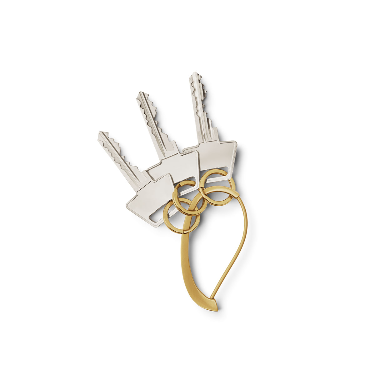 Shades New York nyckelring från George Jensen, består av PVD-pläterat stål med en sinnlig sidenaktie finish i en varm mässingsfärg. Shades kollektionen är designad av Helena Rohner exklusivt för Georg Jensen och består av en serie lyxiga men lågmälda accessoarer som på ett framgångsrikt sätt kombinerar det skandinaviskt svala med den naturliga värmen hos vackra material.