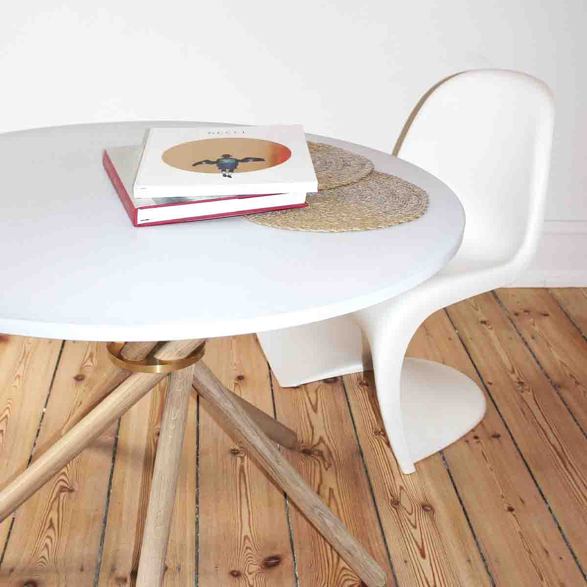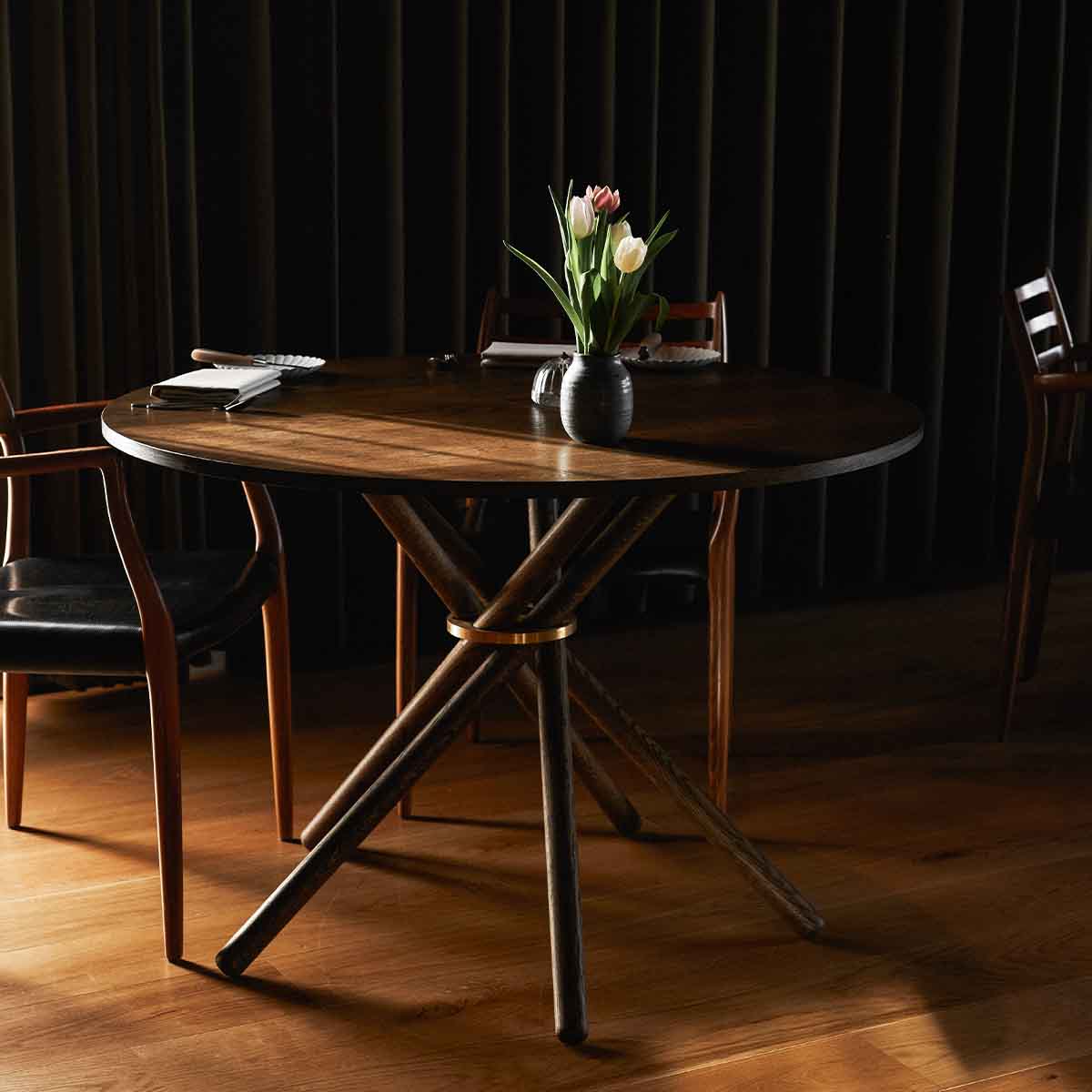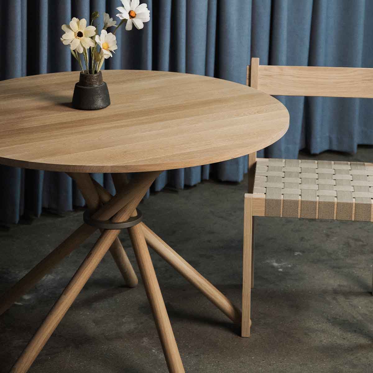 Hector matbord 105 från Eberhart Furniture är ett matbord med en minimalistisk och enkel design, kännetecknad av korsade träben, en monteringsring samt en bordsskiva i antingen ek, betong eller linoleum. Det är ett praktiskt, runt matbord med möjlighet att komplettera med Hector 105 extra blad för expansion från 105 cm till 155 cm. Ett perfekt matbord för trevliga middagar med upp till åtta gäster.