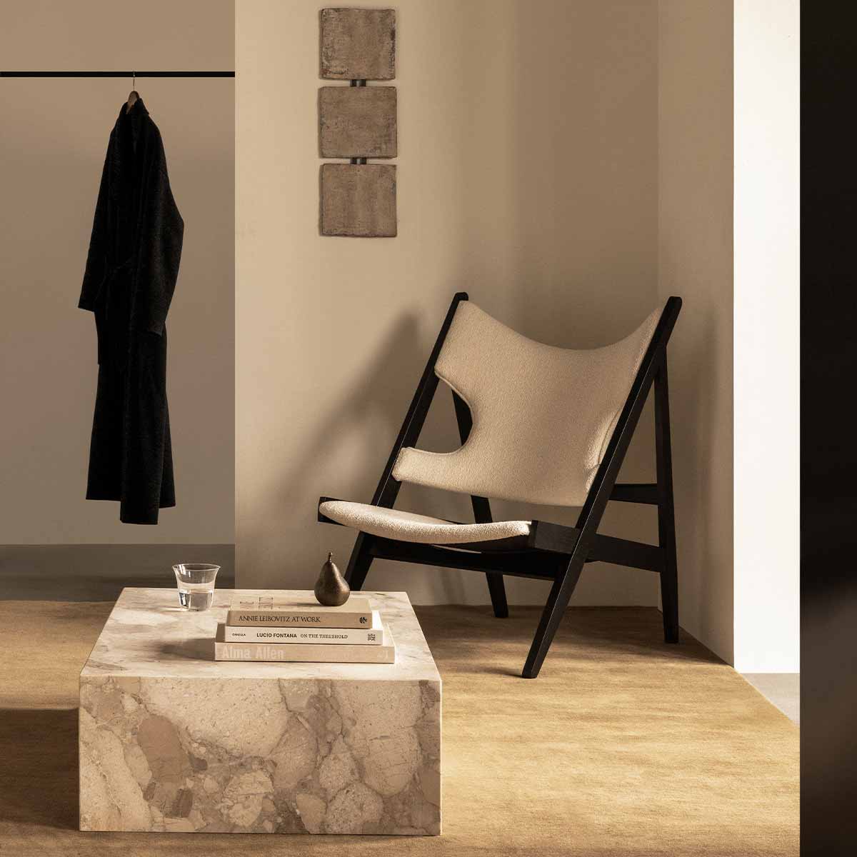 Knitting Chair designades år 1951 av Ib Kofod Larsen och är en ikon för dansk design och hantverk. Fåtöljen skapades ursprungligen för att ge ergonomisk komfort vid stickning. De öppna armstöden gör det möjligt för armarna att röra sig naturligt, vilket bidrar till både funktionalitet och estetik. Den skulpturala designen är noggrant handgjord i Sverige av skickliga hantverkare. Genom att kombinera traditionella hantverkstekniker med modern teknologi, skapas en tidlös möbel av högsta kvalitet. Den unika designen gör Knitting Chair till en perfekt plats för både avkoppling och kreativt skapande.