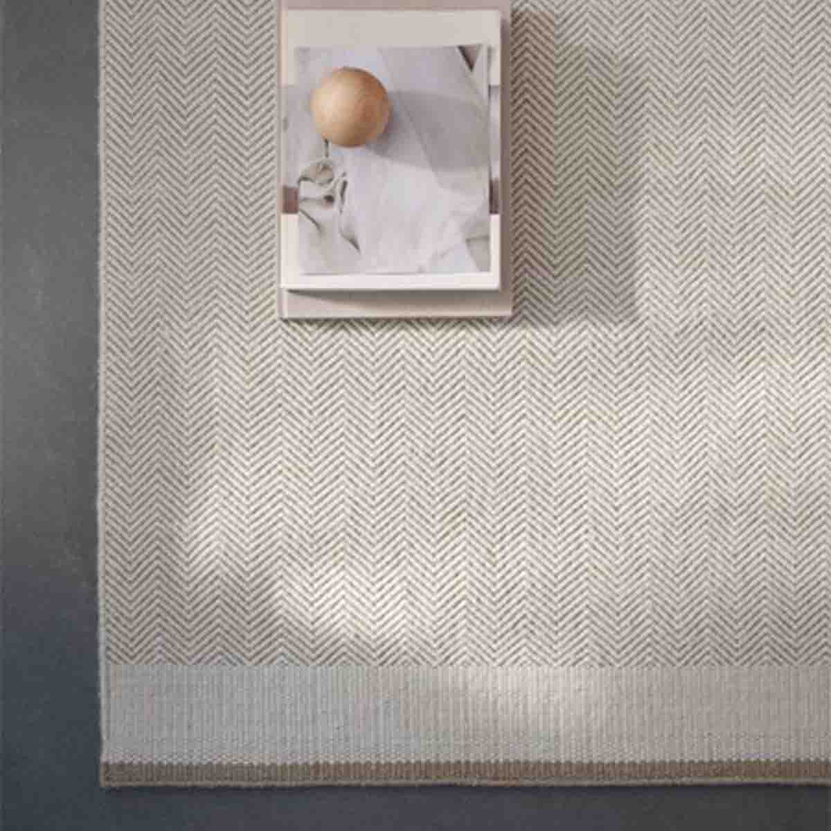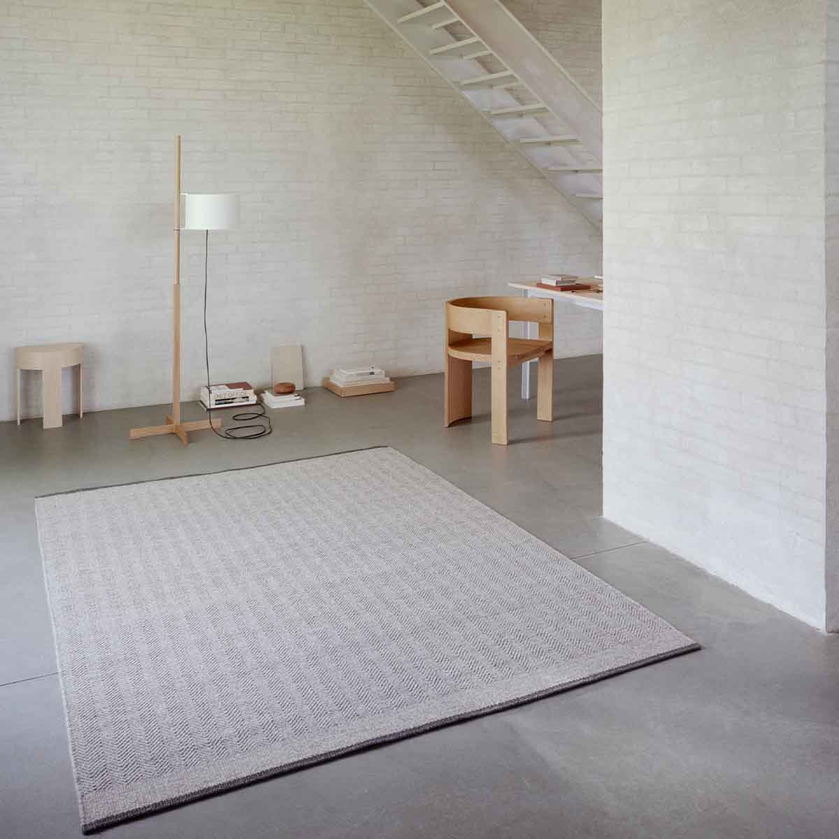 Stratum Echo Matta från Linie Design kombinerar neutrala toner med oändliga rader av chevronmönster för ett dynamiskt men harmoniskt uttryck, vackert balanserat av kontrasterande kanter i ändarna. Mattan är tillverkad av slitstark ullgarn och vävd med linvarp, vilket förstärker Stratum Echos naturliga kvalitet och rustika charm, samtidigt som den ger värme och komfort under fötterna som kan njutas i många år.